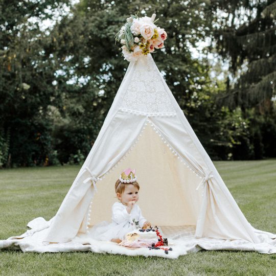 Für den ersten Geburtstag planten die Eltern schon längere Zeit einen tollen Geburtstag. Für den Geburtstag und das Cakesmashshooting wurde der Heimische Garten genutzt und ein wunderschönes Boho Tipi Zelt aufgebaut.